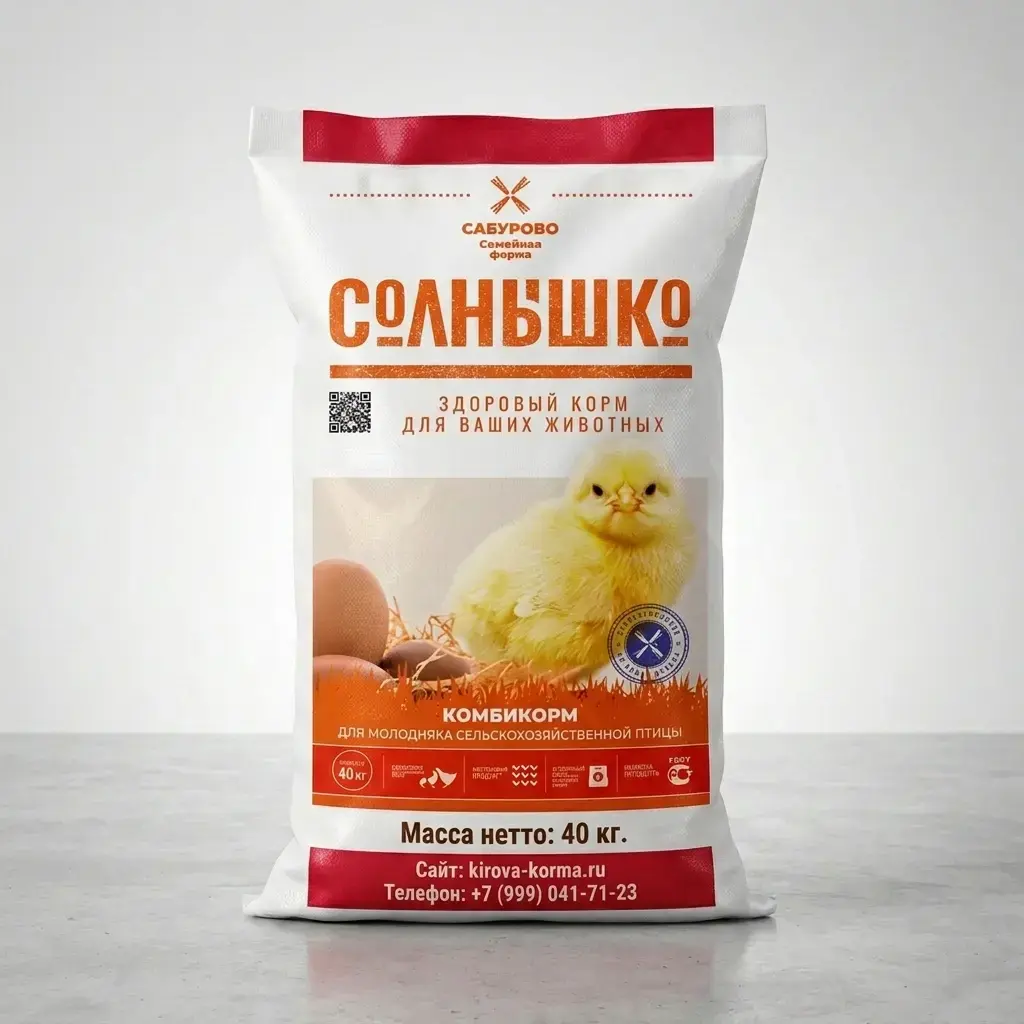 Единственный корм для всех видов птицы с 1 по 7 неделю. С фитобиотиком, ферментами и полным набором витаминов. Обеспечивает 100% сохранность поголовья. Подробное описание: Солнышко — это уникальный стартовый комбикорм, разработанный специально для молодняка всех видов птицы в возрасте от 1 до 7 недель. Он полностью заменяет все другие корма в этот период, обеспечивая птенцов всем необходимым для здорового роста и развития. 🔬 Почему это лучший старт для вашего поголовья? ✅ Универсальность — подходит для цыплят, индюшат, перепелов и других видов птицы. ✅ Фитобиотик в составе — укрепляет иммунитет и защищает от патогенов без антибиотиков. ✅ Ферментные добавки — гарантируют высокую усвояемость всех питательных веществ. ✅ Оптимальный размер крупки — минимизирует потери при раздаче и обеспечивает отличную поедаемость. ✅ Сбалансированный состав — полностью соответствует физиологическим потребностям птенцов. 📊 Показатели качества: Параметр Значение Обменная энергия ≥ 295 ккал/100г Сырой протеин ≥ 20,0 % Сырой жир ≥ 4,6 % Сырая клетчатка ≤ 4,3 % Лизин ≥ 0,96 % 📋 Состав: Зерновое сырье, белковое сырье, белок животного происхождения, масло растительное, минеральное сырье, витаминно-минеральный премикс, аминокислоты, ферменты, фитобиотик, адсорбент микотоксинов, подкислитель. 🍽️ Рекомендации по кормлению: Расход: 10–50 г на голову в сутки Кратность кормления: 5–6 раз в день Скармливать только в сухом виде Обеспечить постоянный доступ к чистой воде Избегать слеживания корма в кормушках 📦 Упаковка: ламинированные мешки по 25 кг ⏳ Срок хранения: 6 месяцев с даты изготовления