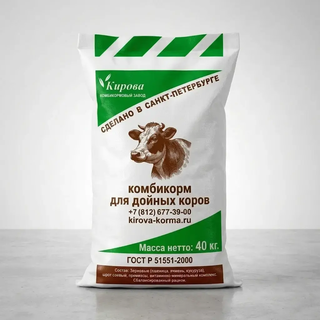 📦 ОСНОВНЫЕ ХАРАКТЕРИСТИКИ Параметр Значение Тип Комбикорм-концентрат Упаковка Мешок 40 кг (возможна отгрузка бестарно) ГОСТ Р 52254-2004 Показатели качества (по рецепту № КК-60-85912/356): Параметр Значение Обменная энергия (ОЭ КРС) 11,0 МДж/кг Сырой протеин 20,0 % Сырой жир 3,25 % Сырая клетчатка 9,28 % Кормовые единицы (в 100 кг) 103,81 Крахмал 22,78 % Лизин 0,67 % Кальций (Ca) 0,58 % Фосфор (P) 0,66 % Натрий хлорид (NaCl) 0,80 % 🔬 СОСТАВ (из официального рецепта) Смесь кормовая СW, шрот подсолнечный, ячмень, кукуруза, жмых подсолнечный, отруби пшеничные, дрожжи кормовые ВП, ростки солодовые, соль, пшеница, премикс, известняковая мука, янтарная кислота. Добавки (на тонну): ферментный комплекс гр 1 100 г, Эндокс 350 г, магний 15 г, Оксикап MS 50,01 г, Сал Карб 500 г. 💊 ВИТАМИННО-МИНЕРАЛЬНЫЙ СОСТАВ (в 1 кг) Витамины Микроэлементы A — 6 000 МЕ Cu — 5,0 мг D₃ — 2 000 МЕ Zn — 10,0 мг E — 1,0 мг Se — 0,10 мг Mn — 4,0 мг Co — 1,5 мг I — 1,5 мг ✅ ПРЕИМУЩЕСТВА КОРМА ✅ Для стойлового периода — разработан для зимнего содержания высокопродуктивных коров ✅ Повышенный протеин (20,0 %) — поддерживает высокие надои и качество молока ✅ Высокая энергия (11,0 МДж/кг) — компенсирует энергозатраты в холодный период ✅ Богатый состав — зерновые, шрот, жмых, дрожжи, янтарная кислота для сбалансированного питания ✅ Концентрат — легко смешивается с сенажом, силосом, грубыми кормами ✅ Ферменты и сорбент — повышают переваримость, защищают от микотоксинов 🍽️ РЕКОМЕНДАЦИИ ПО КОРМЛЕНИЮ Концентрат. Дозировка: Нетели: 1,5–2,5 кг/гол/сут Дойные (средняя продуктивность): 2,5–4,0 кг/гол/сут Высокопродуктивные: 4,0–6,0 кг/гол/сут Вводить постепенно (5–7 дней). Доступ к воде обязателен. Кормить 2–3 раза в сутки.